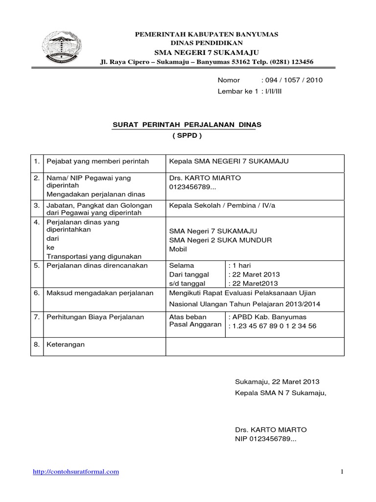 Contoh surat tugas dan sppd doc Surat Perjalanan Dinas Contoh Lengkap Doc Excel Pdf Serbabisnis